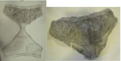 Work in Progress - bra illustration carved into the mould and filled with powder