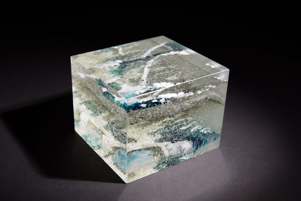 translates these markings into complex designs to incorporate into layers, exploring glass’s unique materiality.