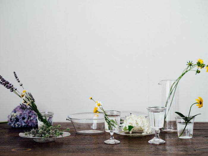 Makiko creates simple blown glass tableware and vessels designed designed for eating and drinking and also for plants including simple Ikebana traditionally used for Japanese flower arrangements.